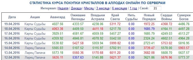 Гляньте - у нас самый высокий курс кри среди всех серверов. Значит - у нас процент донатеров от общего числа игроков меньше на данный момент. Можете сами посмотреть статистику. Ещё месяц назад, до нашего письма, курсы были более-менее близки по серверам.